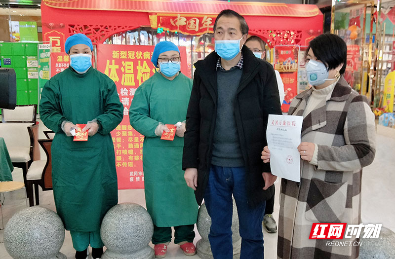 2月3日上午,湖南越明律师事务所副主任刘娟律师、副主任杨纯律师来到武冈市展辉中央新城步步高超市门口,将律所党员律师的捐款共5000元,捐献给在疫情防控一线的武冈市万康医院医务人员。
