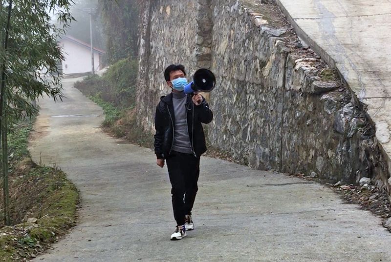 位于村内梅树水库最里面的古路园院落,交通不便道路泥泞,谢朝君背着喇叭步行2公里多的黄泥巴路进院入户宣传隔离政策,了解村民的自我隔离情况,消除宣传死角。他的私家车也摇身一变成了免费的防疫宣传车。