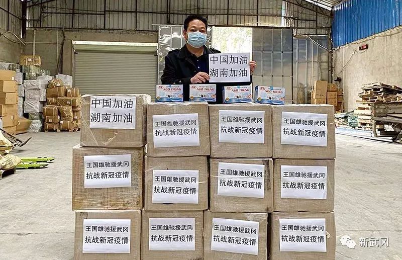 2月8日,武冈籍侨胞王国雄为家乡捐赠的5万只医用口罩从越南安全运抵邵阳、武冈两地。武冈市侨联副主席黎小兰在接受这批捐赠物资时说:“王国雄心系家乡疫情,历尽千辛万苦,为家乡人民送温暖,感人至深!”