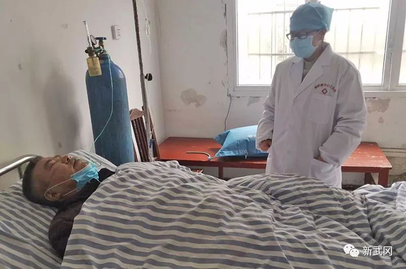 2月4日,周小平刚从敬老院进行完医学监测回到卫生院,看到卫生院正组织医务人员去金华村为陈代坤老人看诊。周小平知道卫生院人手紧张,于是主动请缨去看诊。88岁的陈代坤老人家的儿子在武汉工作,由于武汉封城,儿子回不来,与老伴儿相依为命。这段时间,老人身体不适,好长时间没进食,家里老伴儿担心的只能向村支两委寻求帮助,村干部立即上门看望老人,并联系卫生院派医生来看诊。