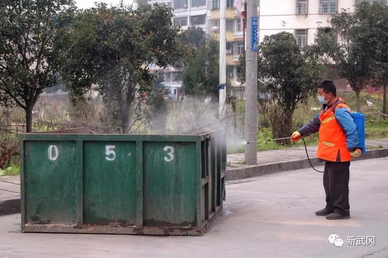 △钟志文在给垃圾箱消毒