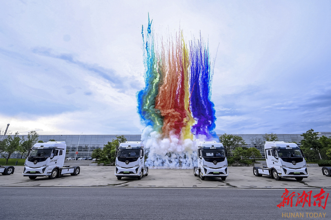 6月28日,长沙三一产业园,三一重卡专为快递干线量身打造的江山SE636电动重卡正式量产发布。 湖南日报全媒体记者 辜鹏博 谢卓芳 摄