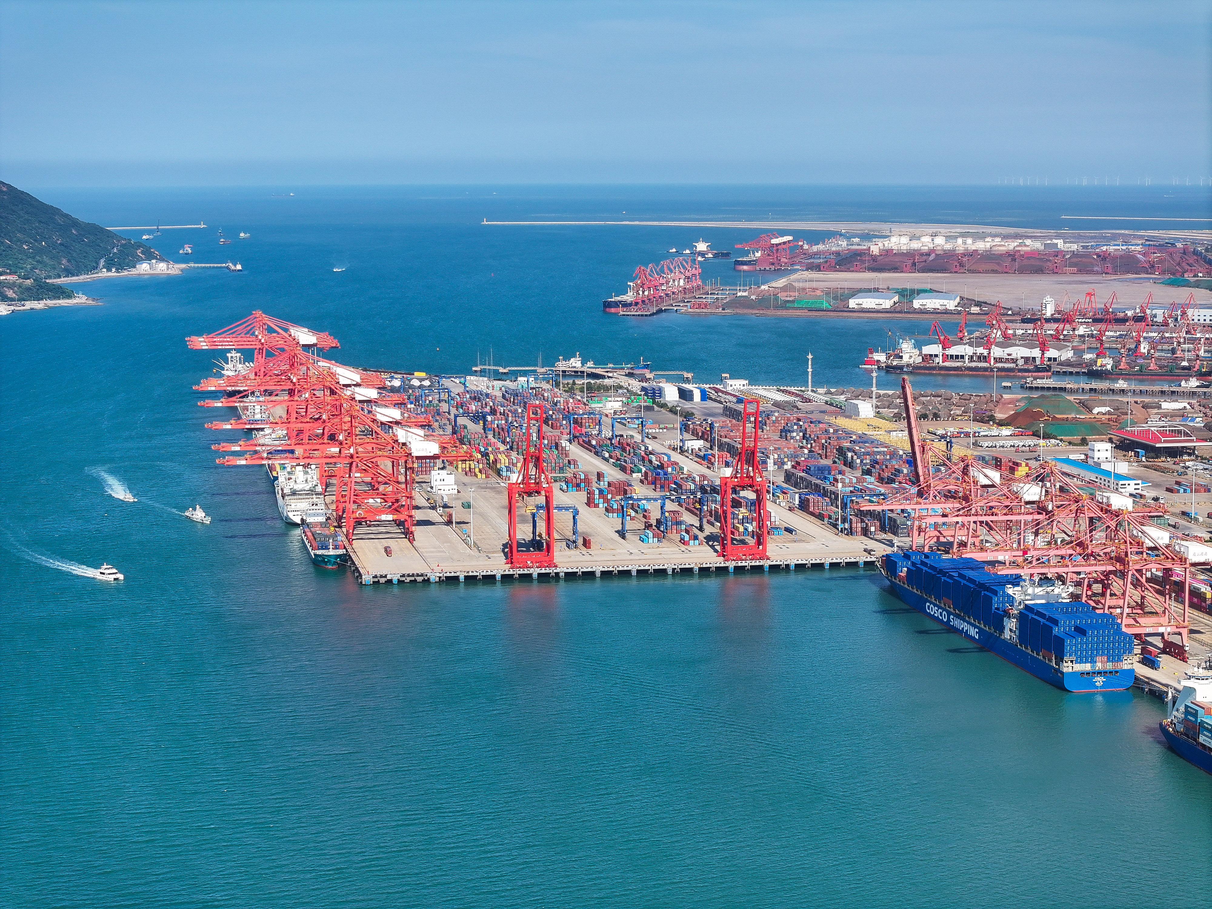货轮停靠在连云港港集装箱码头(2024年6月26日摄,无人机照片)。