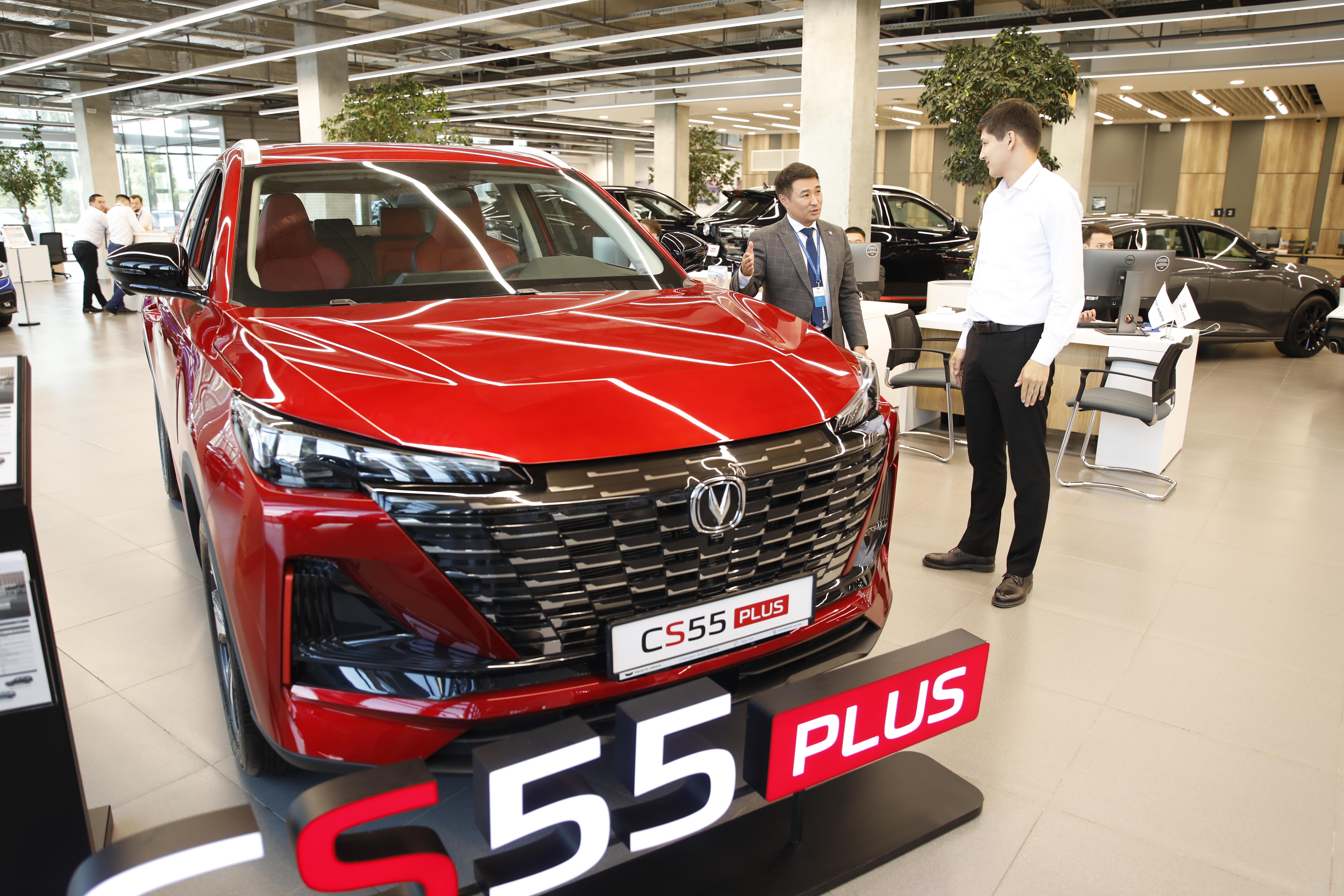 2024年6月24日,顾客在哈萨克斯坦阿斯塔纳了解中国品牌汽车。新华社发(奥斯帕诺夫摄)牵山连海,双向奔赴。“钢铁驼队”在连云港和中亚地区之间往返穿梭,为东西交融、贸易畅通注入源源不断的动力。