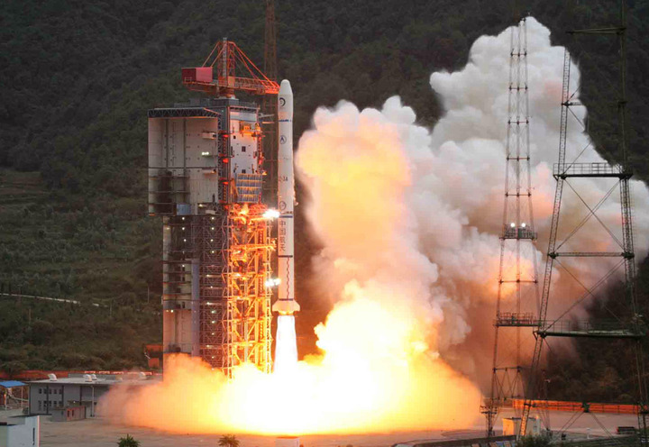 2007年10月24日,搭载着我国首颗探月卫星嫦娥一号的长征三号甲运载火箭在西昌卫星发射中心三号塔架点火发射。新华社记者 李刚 摄