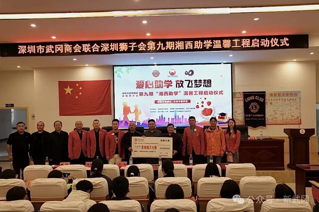 10月24日,深圳市武冈商会与深圳狮子会在武冈二中共同启动第九期“湘西助学温馨工程”。本期助学活动共向武冈一中、二中32名高三困难学生每人发放5000元助学金,捐赠总额达16万元。市人大常委会副主任刘涌涛出席仪式。