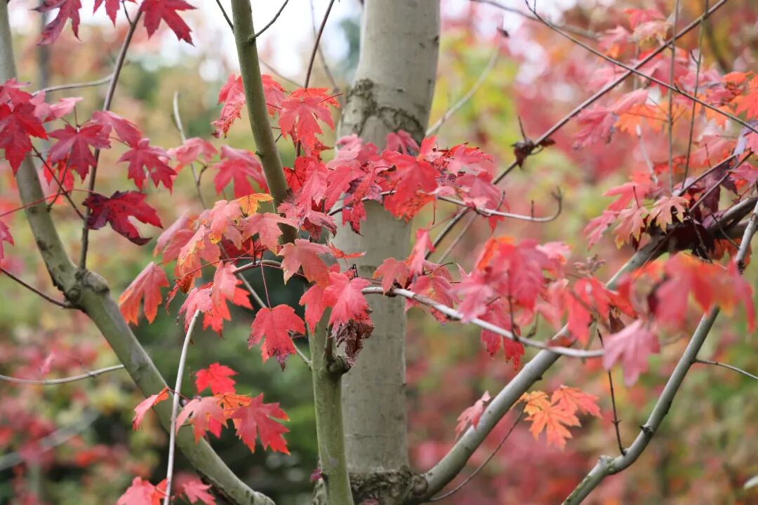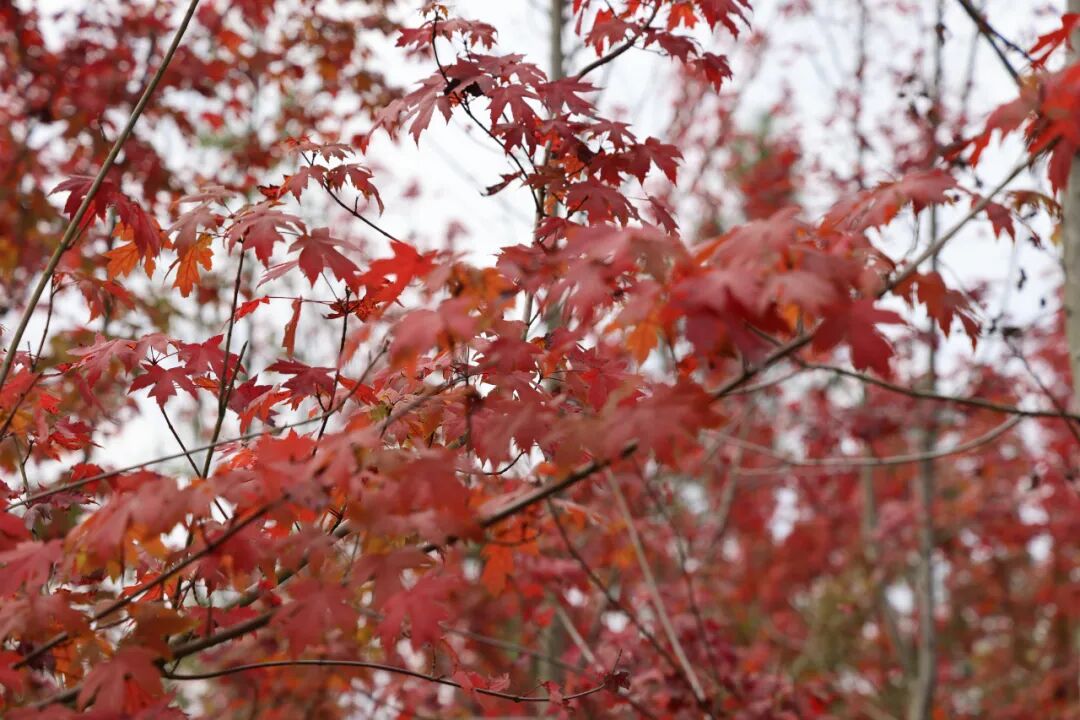 据了解,红枫又名红叶羽毛枫,属槭树科植物。其枝条细长光滑,树形优雅,叶色随季节变化:新生嫩叶呈典雅紫红,成熟后转为深邃的古铜红色,具有很高的观赏价值。预计此番盛景可持续约一个月。