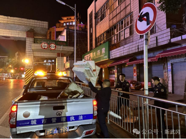 从主次干道到背街小巷,从农贸市场到居民社区,执法队伍深入城乡结合部、学校医院周边等人员密集区域,针对占道经营、非机动车乱停放、“牛皮癣”广告等“六乱”问题开展拉网式清理。夜色中,手电光束照亮卫生死角,执法队员俯身搬运杂物、清除顽渍,还市民一个清爽整洁的公共空间。